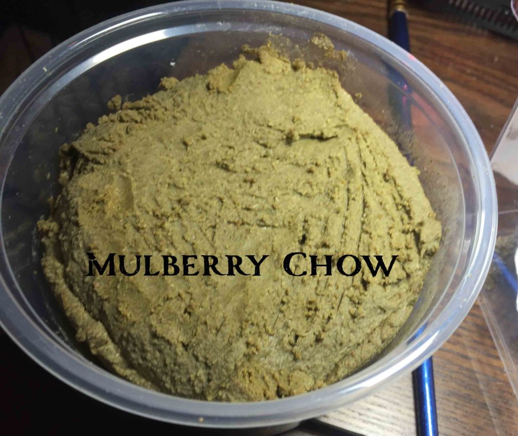 On 01/03/20, the mulberry chow was ready. I was worried that the silkworms that were eating seaweed would die because it was salty, and salt can kill snails, so maybe it would kill them. So I separated the silkworms that were eating seaweed into a different container to keep an eye on them, then fed them all mulberry chow.